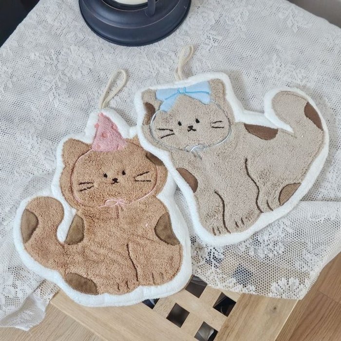 shmily 고양이일러스트 행주 일러스트 행주 욕실 유치원 어린이집 면 코튼 고리 타올 타월
