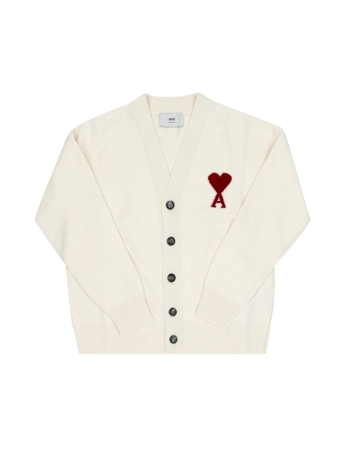 [아미] AMI UKC367 018 154 아미 드 꾀흐 빅 하트 로고 인타르시아 브이넥 공용 가디건