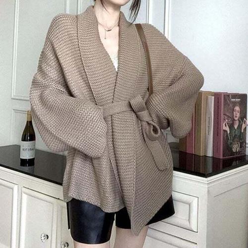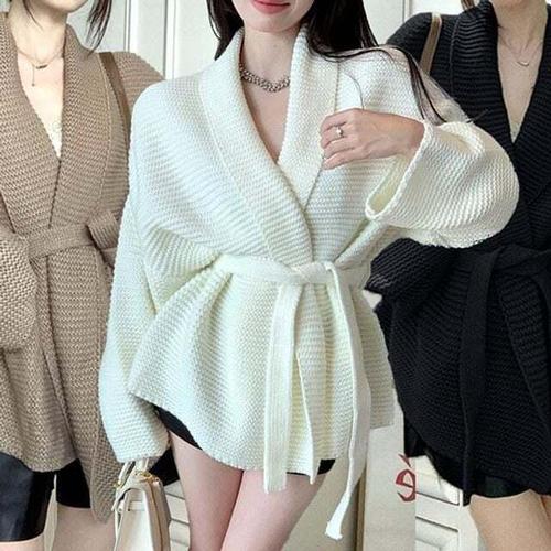 [셀럽하우스]여성 AIAR9009 로브 와플 가을 겨울 여자 루즈핏 가디건
