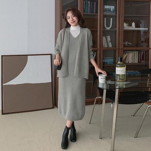 [유야]가디건 브이넥 나시 롱 원피스 니트 세트 투피스 -SST0090H- 여성 겨울