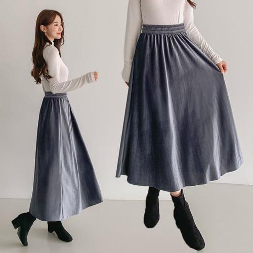 [유야]여성 벨벳 스판 밴딩 플레어 롱스커트 -FSK0109- 가을 겨울
