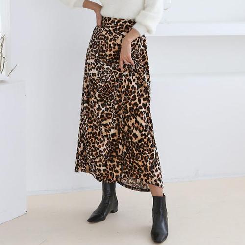 [유야]레오파드 호피 벨벳 훌 롱 스커트 벨로아 -SK0120H- 여성 가을 겨울