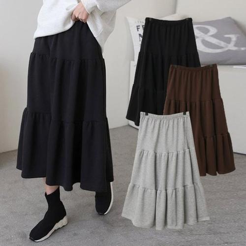 밴딩 여자 기모 치마 기모치마 롱 스커트 겨울 (3b2S4)