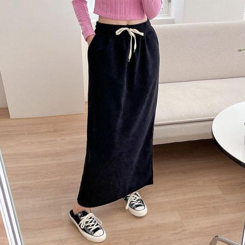 [옷자락]여자 골덴치마 H라인 코듀로이 밴딩 겨울 롱스커트