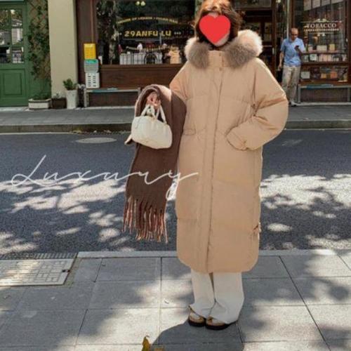 POMTOR 겨울 여성 화이트 다운 패딩 큰 퍼카라 허리라인 슬림 두꺼운 보온 롱코트시즌오프세일