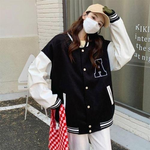 [오너클랜]인기상품 겨울스타일 유니크한 프린팅 베이직 야구 점퍼 배색 여성 [WFK9JZF_260407]