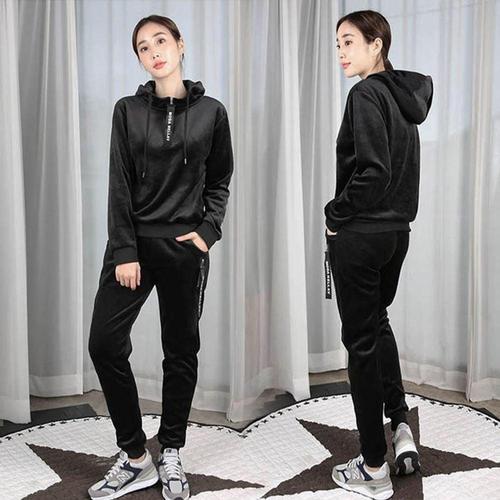 여성 기모 트레이닝 세트 벨벳 벨로아 후드 겨울 여자 WCFF874