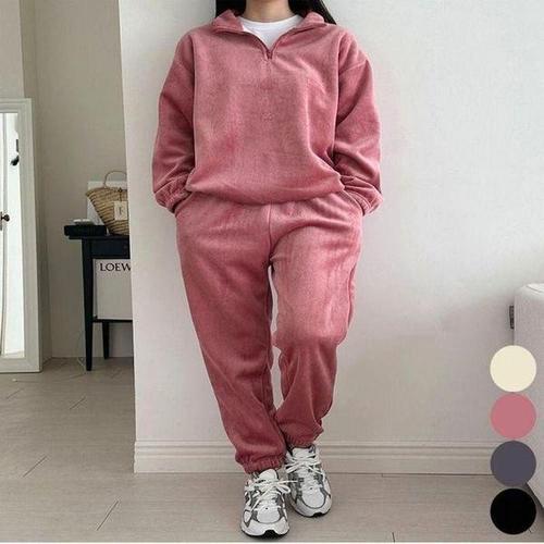 [셀러허브_여성트랜드패션]여자 겨울 트레이닝복 조거팬츠 세트 반집업 기모안감