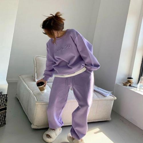 겨울 Tracksuit 여성 두 조각 세트 - 대형 까마귀 스웨트 팬츠 솔리드 컬러 운동복 정장 | 캐주얼 스웨트팬츠 바지 세트