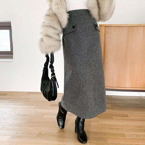 [옷자락]여자 겨울 스판 H라인 뒷트임 치마 회사원 롱 스커트
