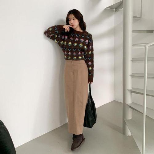 [스타일나]여자 봄 가을 겨울 밴딩 H라인 뒷트임 슬림 니트 롱 스커트 날씬 치마