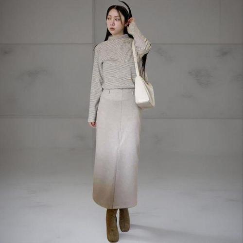 [옷자락]여성 겨울 울 앞트임 H라인 오피스룩 롱 스커트