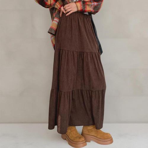 [신상오픈런]여성 골덴 롱스커트 밴딩 캉캉 가을 겨울 데이트룩