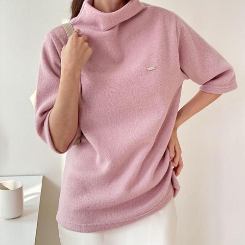 [다잇템] [시즌오프]기모폴라티 얇은 겨울반팔 모크넥 티셔츠_5