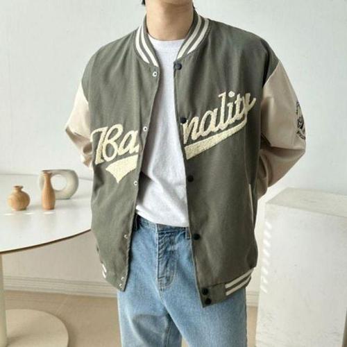 오리지날 레트로 스냅단추 야구점퍼 남녀공용 오버핏 야구잠바 심플한 컬러 배색 아우터
