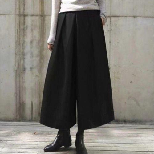 9부 따뜻한 와이드팬츠 모직 밴딩 겨울 여자 치마바지 WFLQ89O