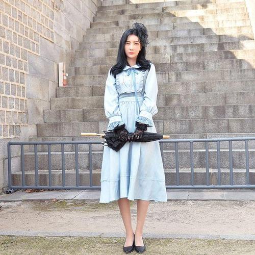 [교복몰]교복몰 실버그레이 2단프릴 레이스 롱원피스 경성의상