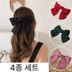 1+1+1+1 왕리본 고급 실크 새틴 머리핀 리본자동핀 4종세트
