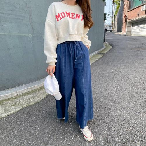 여름 청바지 여성 쿨 와이드 밴딩 팬츠 고무줄 통 홈웨어 여자