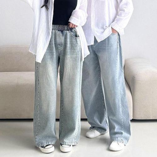 [다잇템]여자 진 고무줄 남자 그런지 워싱 넓은 청바지