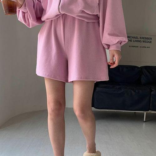 [다잇템]여자 고무줄 와플 와이드핏 FW 일상룩 반바지