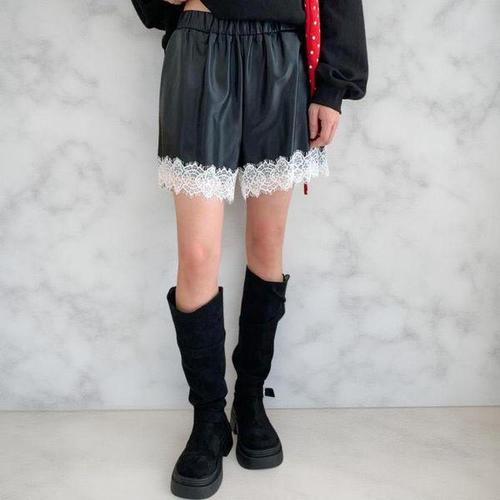 [다잇템]여성 밑단레이스 힙무드 고무줄 레더 숏팬츠