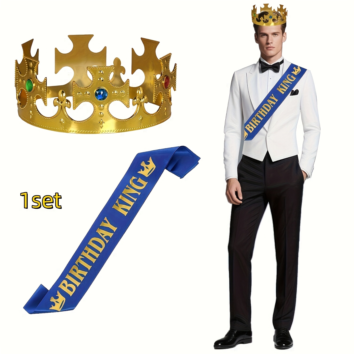 TEMU 남성용 생일 왕관과 숄더 숄드 1세트, 파티용 전용 로열 왕관 머리 장식과 숄더 숄드, 필수 생일 파티 장식 용품