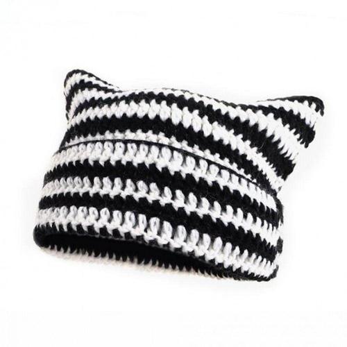 여성 및 여아용 스트라이프 니트 모자, 하라주쿠 비니, 귀여운 고양이 귀 모자, 작은 악마, 일본 스트리트웨어, 가을 겨울, 신제품