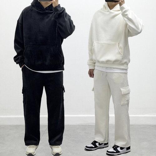 [올겨울 교복템] 양털 골덴 후드 핀턱와이드 세트 오버핏 기모 트레이닝SET 데일리 남녀공용