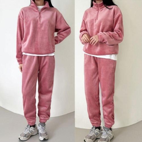 잘빠진 기모 루즈핏 벨벳 코듀로이 반집업 상의 + 일자 롱 밴딩 팬츠 세트