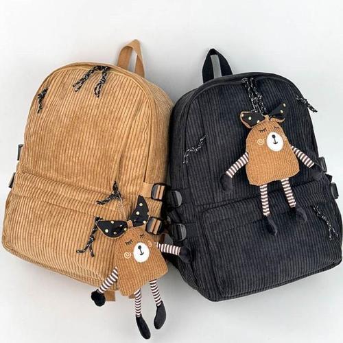 [시스터즈] 귀여운 인형 고리 골덴 백팩 코듀로이