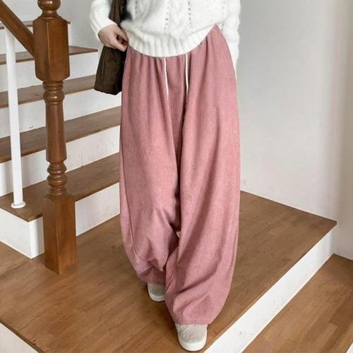 루이벤 여성 코듀로이 기모 와이드바지 스트링포인트 밴딩 팬츠 골덴바지 일자핏 겨울따뜻한 데일리룩 프리사이즈(44-77)