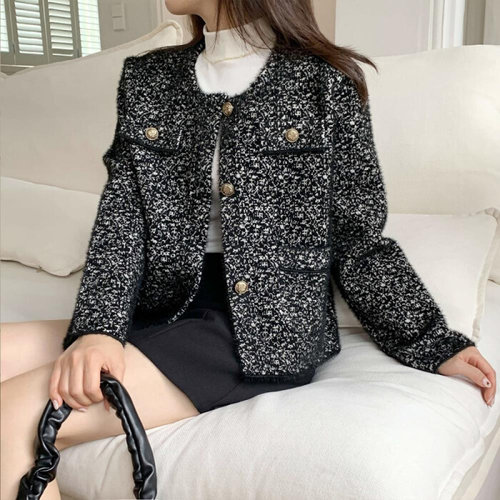 [신상오픈런]여성용 골드버튼 트위드 퍼 자켓 블링 정장
