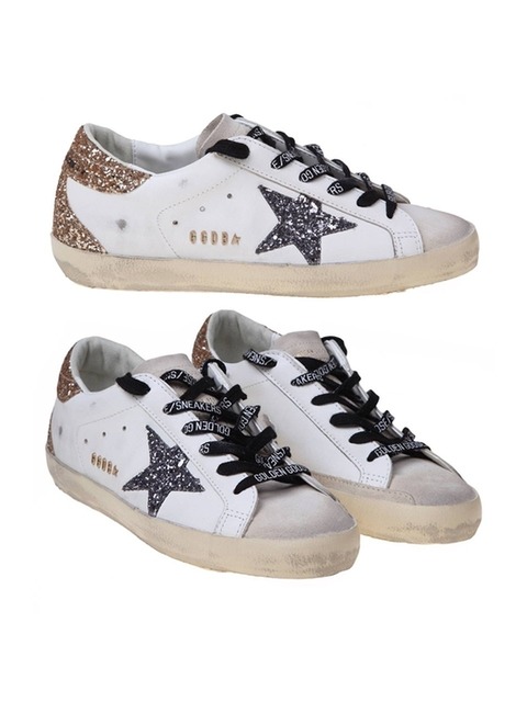 골든 구스 슈퍼스타 글리터 힐 가죽 스니커즈