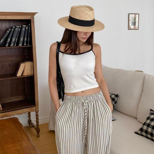 [옷자락] 여자 끈 배색 베이직 골지 캡 나시