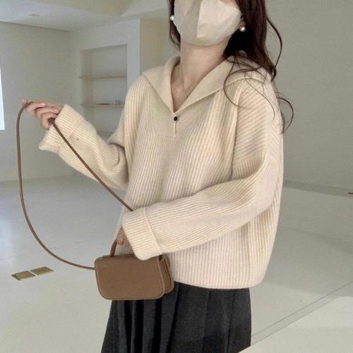 [센트럴몰]차분 포근 소프트 단추 카라 골지 여리핏 니트