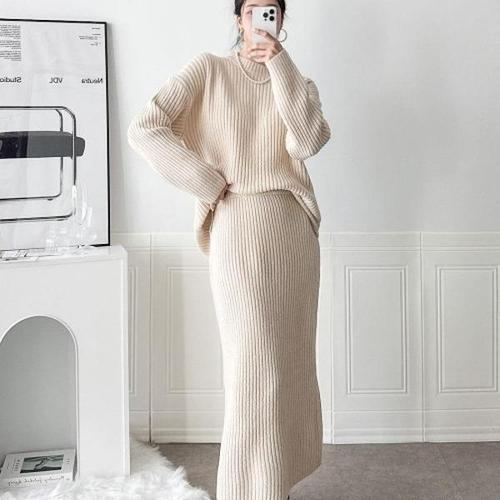 [BZJL4W7C_4C]루즈핏 골지니트 일자핏 트임 스커트 투피스