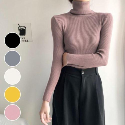 여성 5색 데일리 니트 골지 목폴라 STC050001