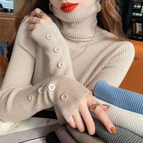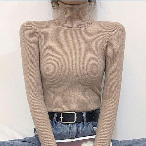 여성 목폴라 골지 니트 이너 슬림 터틀넥 긴팔 티셔츠 WFKLZU6