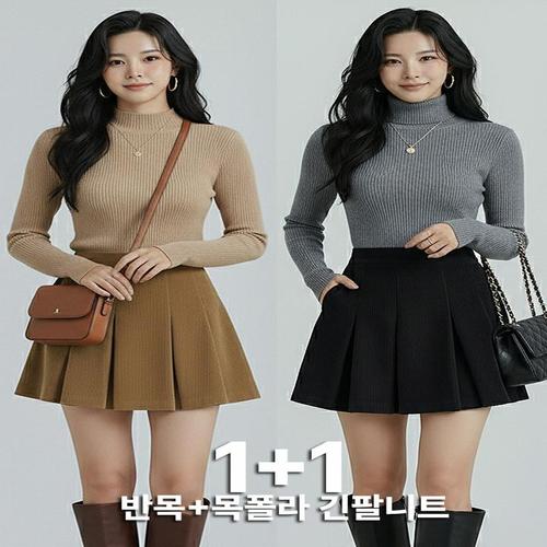 [플로우랩][플로우랩] 1+1 반목+목폴라 골지 슬림핏 니트_FLPE003W25