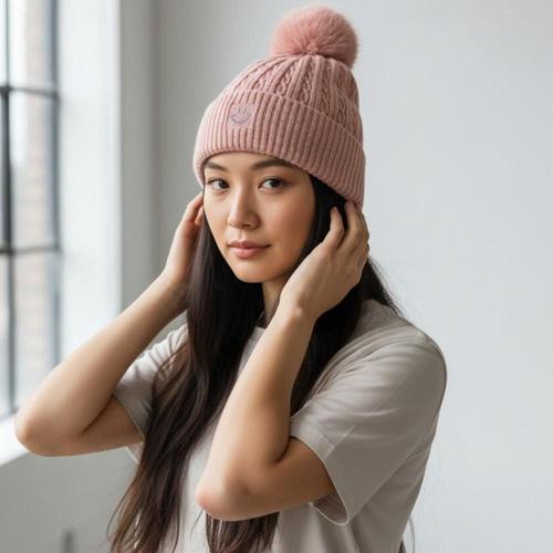 여성 스마일 비니 털모자 방한 골지 니트 모자 뜨개 숏비니 WFL8Y08