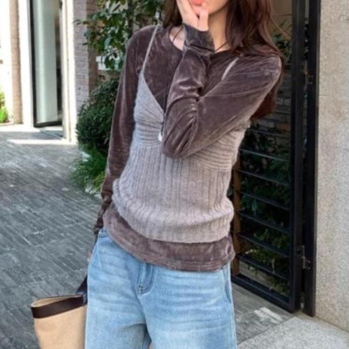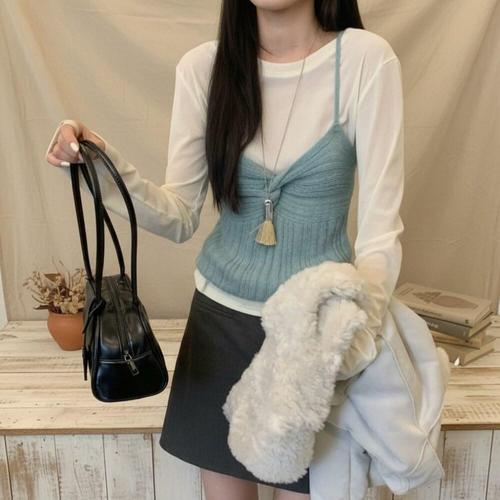 [옷자락] 여자 골지 꼬임 브이넥 레이어드 니트 조끼