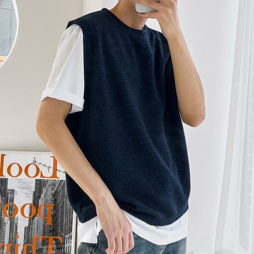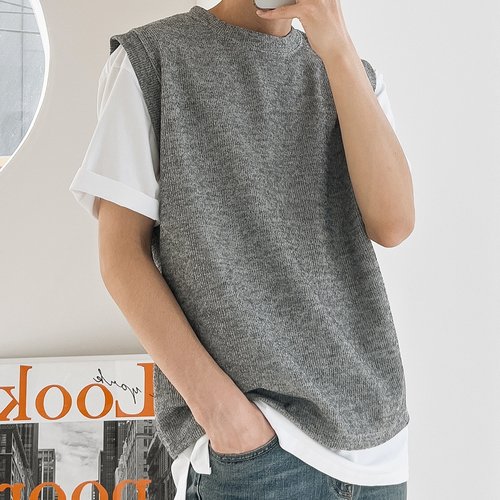 남자 캐주얼 골지 베이직 라운드 니트 조끼 OC-VEA-SWFH2XDF