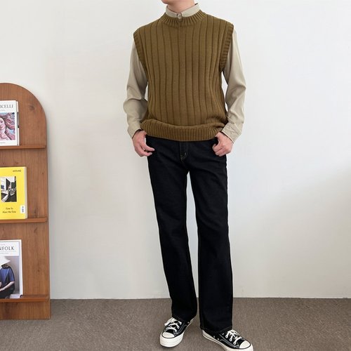 남자 무지 골지 라운드 니트 데일리 조끼 5C5-VEA-Q116-메란지