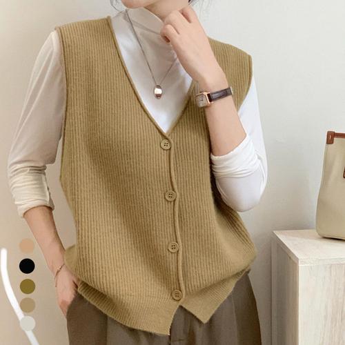 (BNCWC2003) 여성 데일리 브이넥 골지 니트 베스트 데