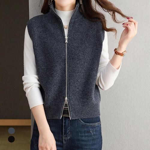 울 니트 베스트 FW 신상 순수 메리노울 100% 순모 여성 골지 레이어드 오버핏 옆트임 조끼 빅사이즈