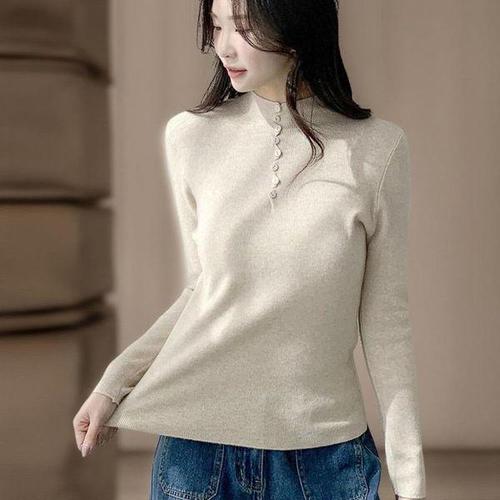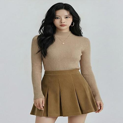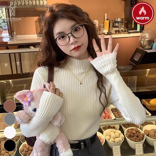 따뜻한 여자 니트 폴라 티셔츠 골지 기모 겨울 데일리