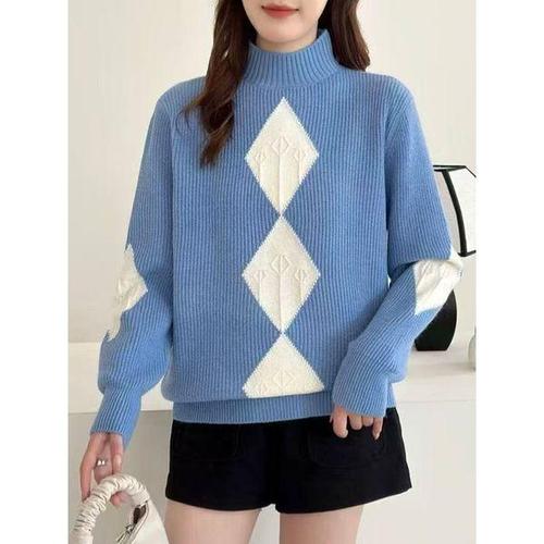 [하젤]비몬 반폴라 아가일 골지 니트_F4289