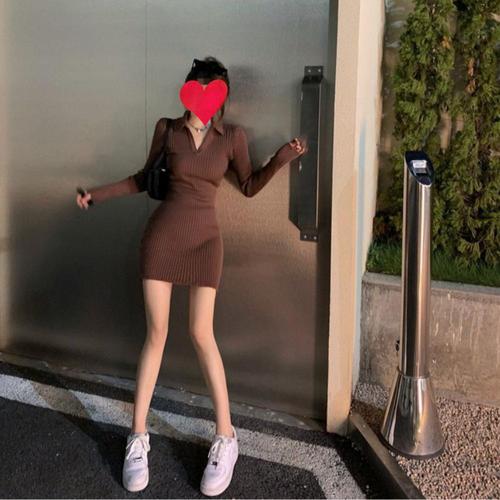 섹시 미니 골지 골지니트 파티 V넥 원피스 여 WFLMUSR