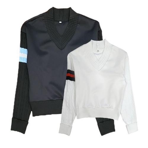 투솜 여성골프니트 방풍골프니트 겨울골프니트 방풍안감 어깨라인배색 니트 여성 배색 울 라운드 긴팔 니트 여자 겨울 골프 기모